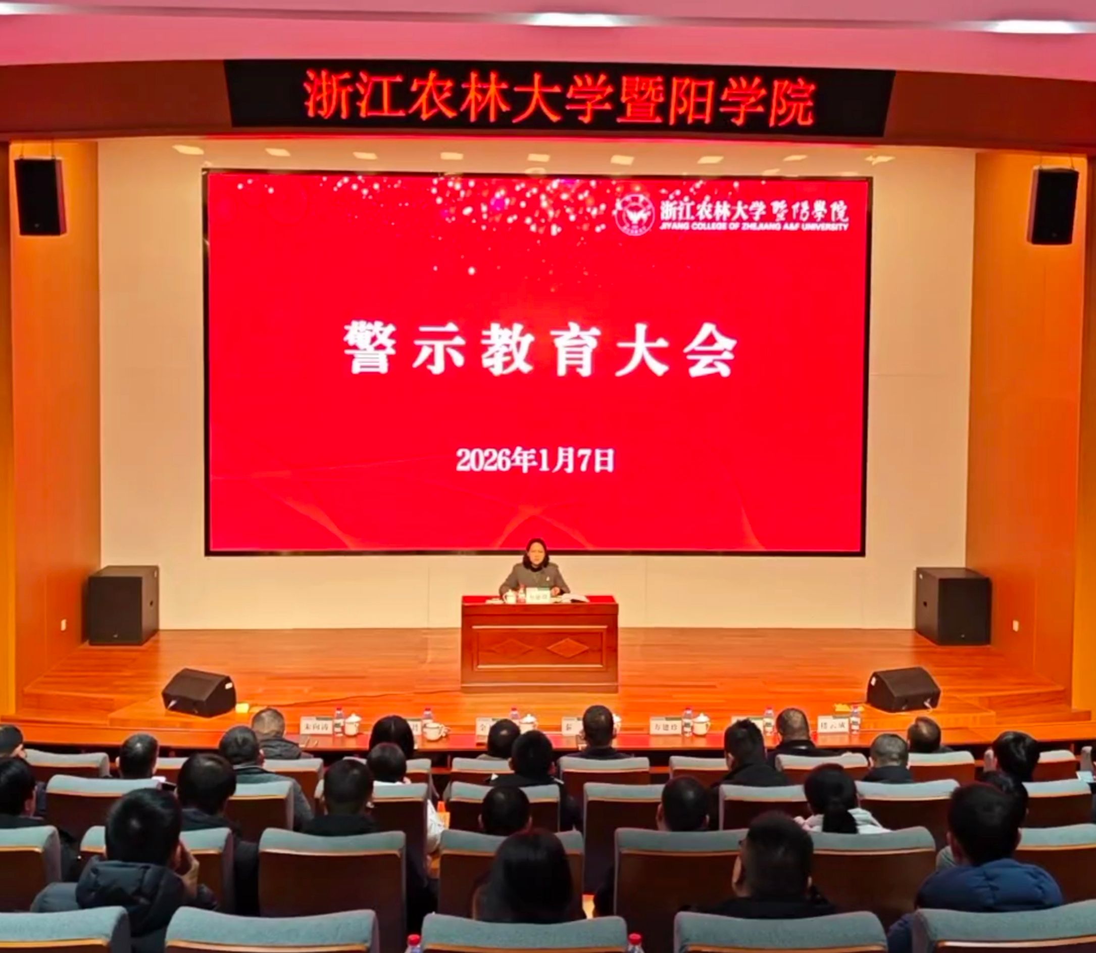 为进一步深化全面从严治党,筑牢党员干部拒腐防变思想防线,1月7日上午,学院组织召开警示教育大会。学院领导、全体中层干部参加会议。会议由纪委书记方建珍主持。